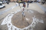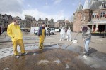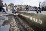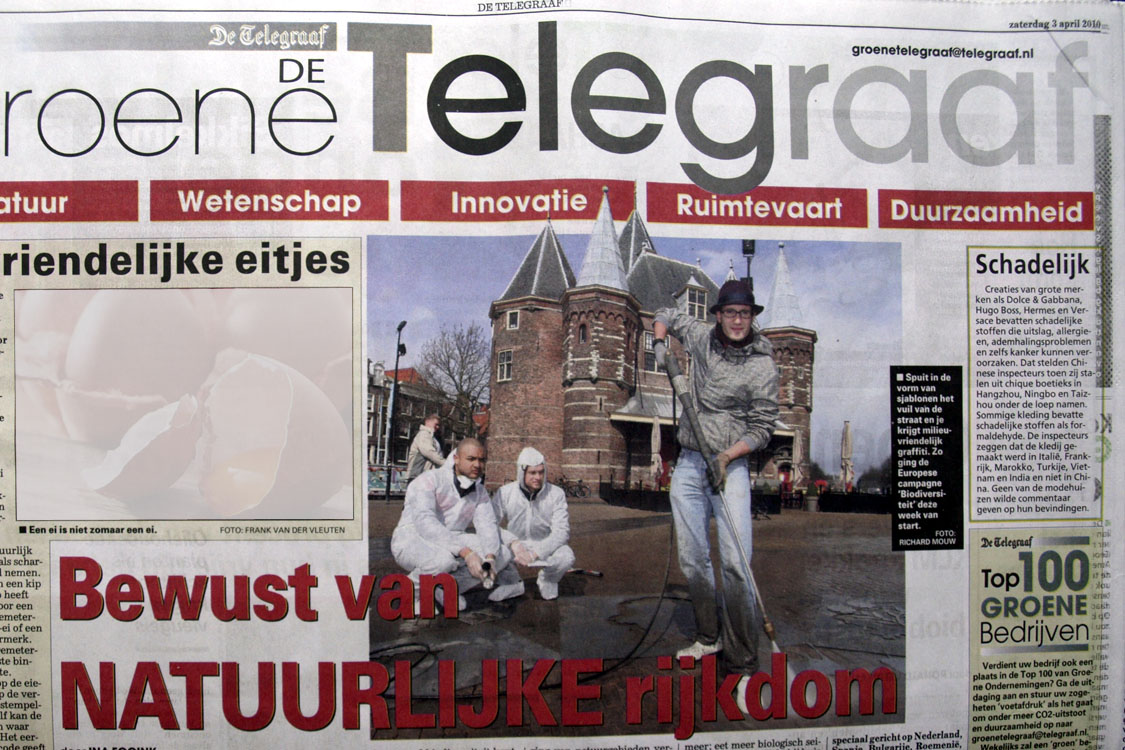 These reasons encouraged the European Commission to hire advertising agency Ogilvy to create a campaign to raise awareness, educate the general public and engage with citizens on the subject of biodiversity. Amsterdam was chosen (out of 6 EU countries that will host the event) to launch the campaign ‘we are all in this together’. PR agency de Wolven organized the kick-off and asked me as a local Eco-artist to create an artpiece using Green Graffiti, this graffiti technique uses only a template and a high pressure water sprayer to clean a message on the dirty streets.
